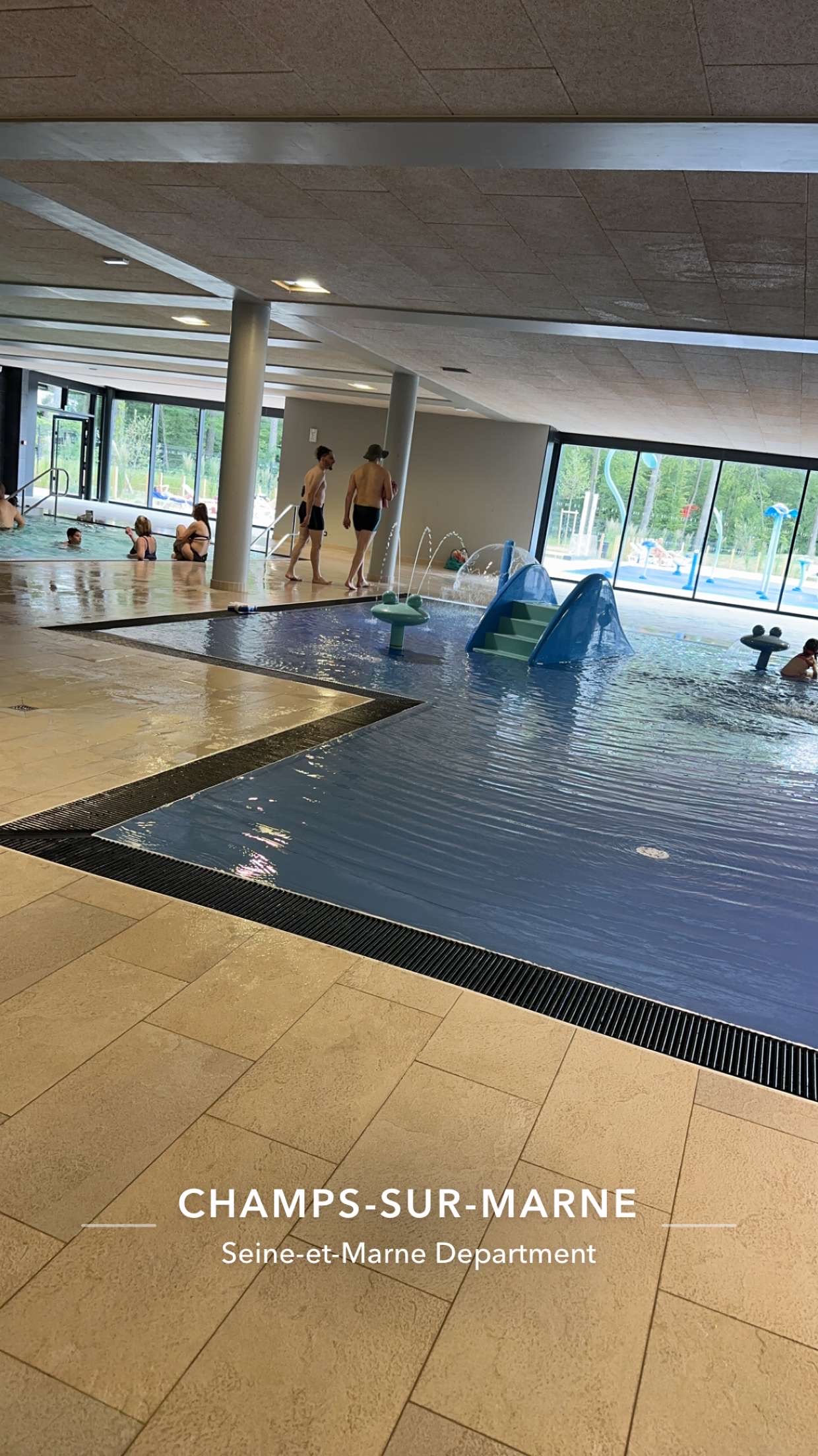 Posté le 21/09/2023 à 08:11"Enfin un centre aquatique à Champs sur marne.Grand bassin olympique de 50 m en extérieur, un autre de 25 m en intérieur, cours d'aquagym dans un autre bassin à l'intérieur. Petit bassin proposant des jets massants et une cascade pour les cervicales. Un peu chargé en période estivale, il manque juste une piscine à vagues pour égaler les nymphéas de Noisy le Grand..."